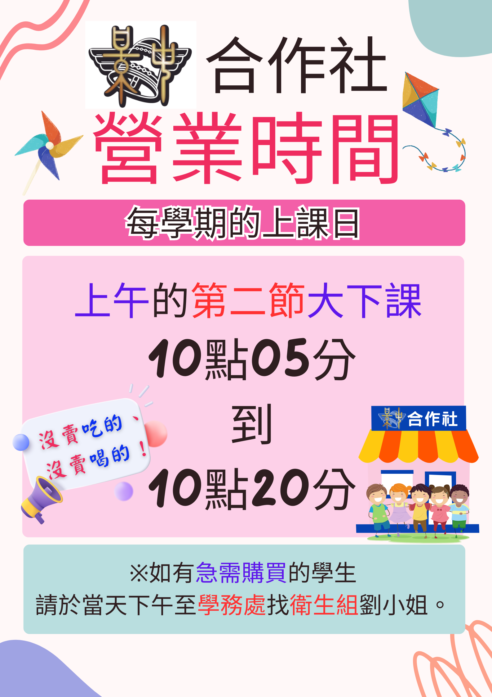 學期間,合作社營業時間為每天上午的大下課(am10:05~10:20),
