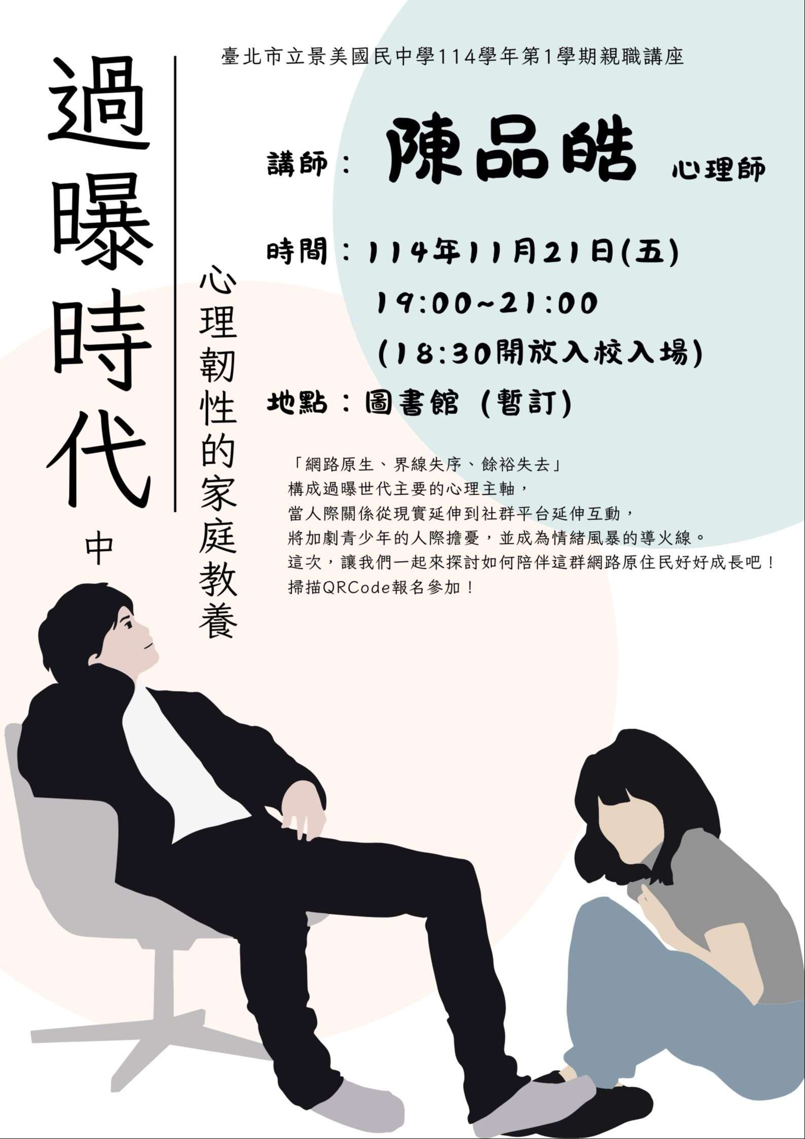 本次講座特別邀請著有《過曝世代》一書的陳品皓心理師,